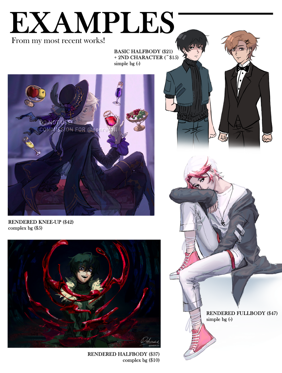 ㅤ- ( 10% - 20% ) of the "portrait" price depending on complexity➤ Multiple Characters (MC):